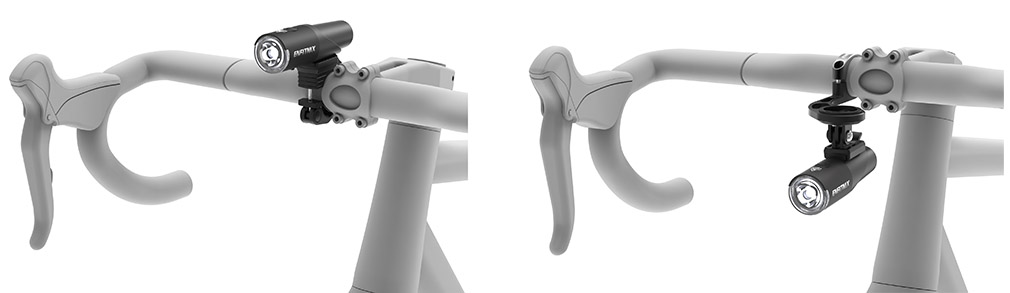 Montáž na řídítka se provádí nacvaknutím do přiloženého držáku, který může být na řídítkách umístěn trvale. Vyjmutí nebo vložení svítilny je tak otázkou okamžiku. Úchyt má možnost nastavení na různé průměry řídítek (20-35mm). Držák je stabilní a svítilna drží spolehlivě i při průjezdu těžkým terénem. Lze také zakoupit náhradní držák, pokud máte více kol a chcete ušetřit čas přehazováním držáku. V balení naleznete také gopro redukci na instalaci do podvěsu k předsazenému držáku Garmin (držák je k dostání samostatně). Nemějte obavy, že v podvěsu nebude vidět tlačítko, kde je zároveň indikátor stavu baterie. Svítilna je ve svém středu totiž otočná a přední část s reflektorem tak zůstane v původní poloze.