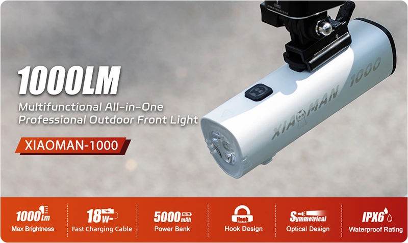 Gaciron Xiaoman 1000 představuje kompaktní, ale velmi výkonné přední světlo na kolo s maximálním světelným tokem 1000 lumenů. Spojuje minimalistický vzhled s širokou funkční výbavou. Klíčovým prvkem je symetrická optika, která zajišťuje stejnou kvalitu osvětlení jak při standardním uchycení na řídítkách, tak i při instalaci do podvěsu pod řídítka.
