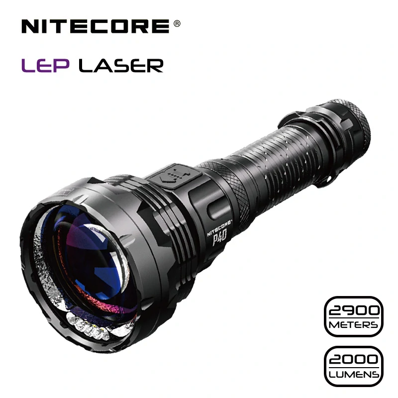 Nitecore P40 je výkonná taktická svítilna nové generace, která spojuje extrémní dosvit technologie LEP (Laser Excited Phosphor) s praktičností širokého LED osvětlení do jednoho kompaktního těla. Hlavní dálkový LEP paprsek s dosahem až 2 900 metrů je ideální pro vyhledávací a monitorovací účely, zatímco pět samostatných LED rozprostřených kolem hlavní optiky se stará o výkonné osvětlení blízkého okolí.