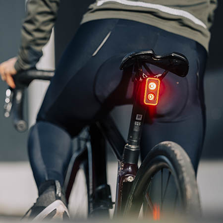 Auto start/stop - pomocí senzoru pohybu se světlo automaticky přepne do režimu stand-by v případě, že kolo není v pohybu po dobu 5 minut. Po rozjetí se světlo opět zapne. Tato funkce výrazně šetří baterii.